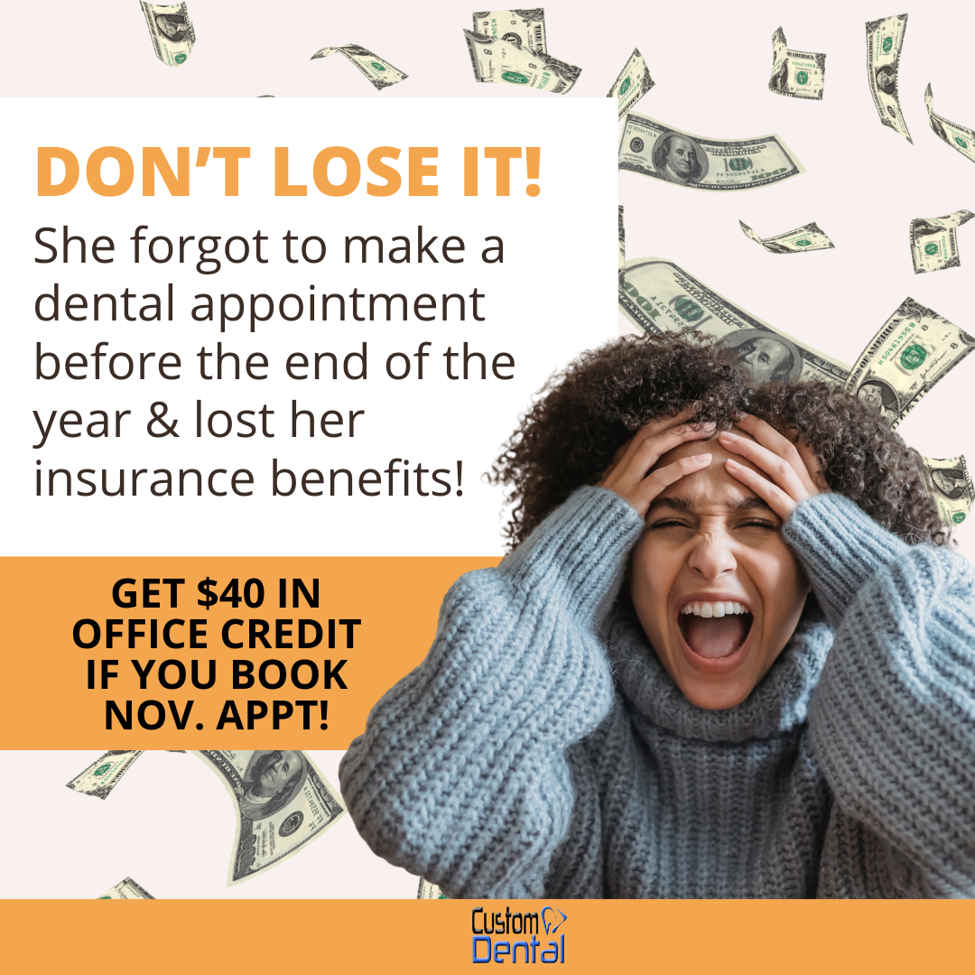 Use your insurance benefits before the end of the year or lose them. Our Thanksgiving Gift to You: $40 in office credit if you book in November. Book now https://www.thecushingdentist.com/booknow or call (918) 225-0420 and mention code THANKS. Expires 11/30/25 and not valid with any other offer.